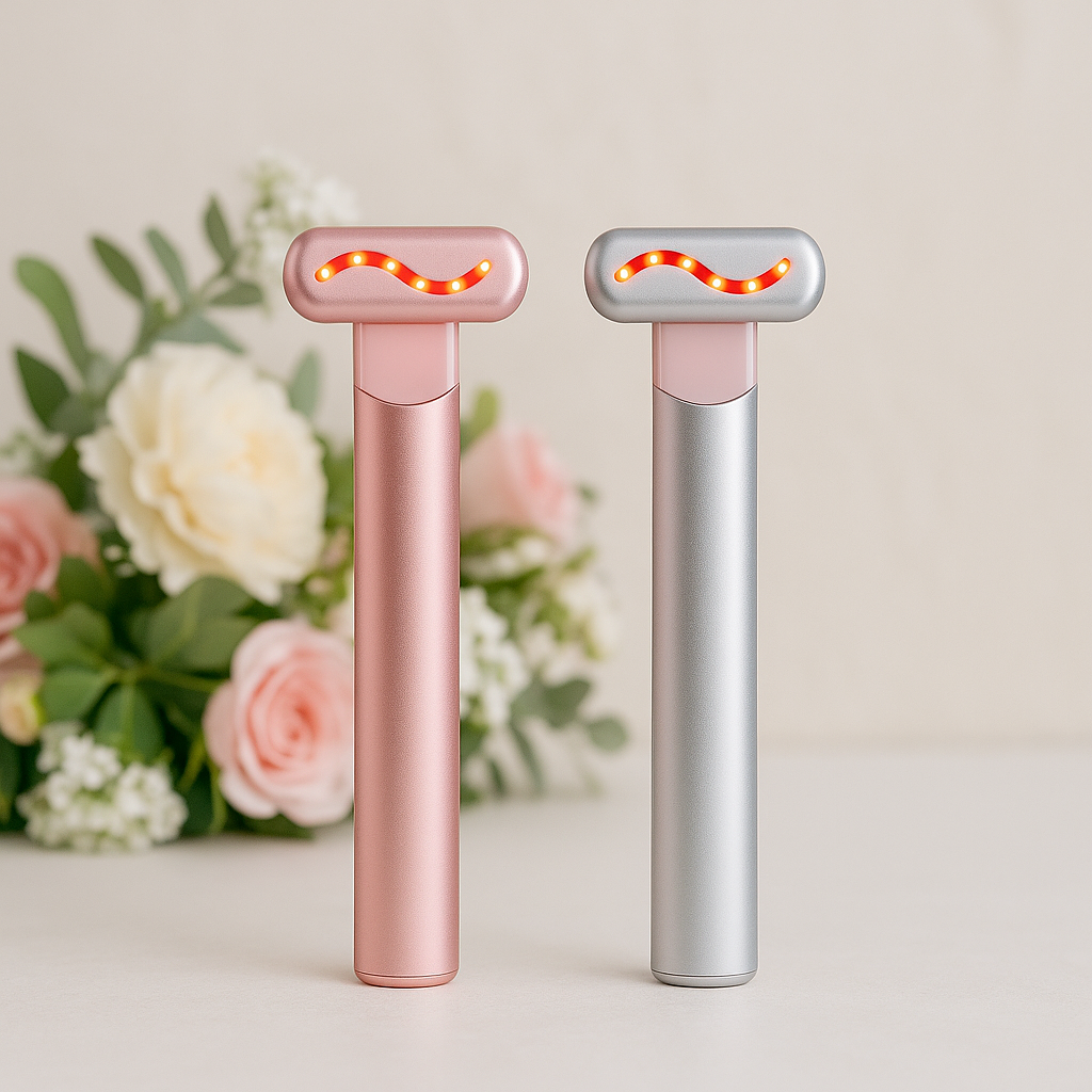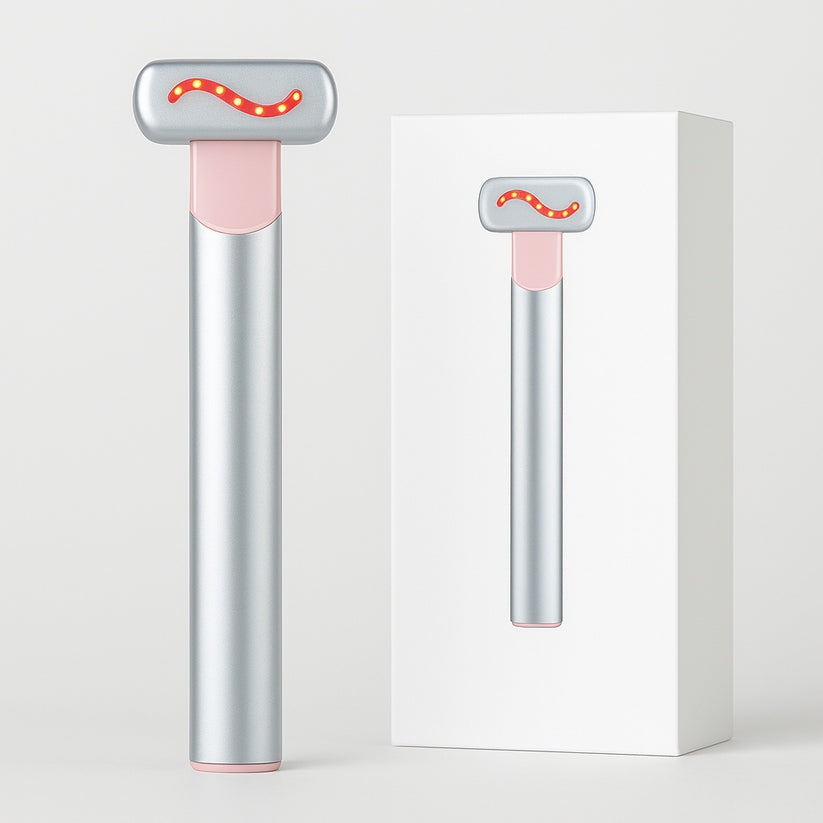 Meet AuraOfRed™ LumaLift — your 4-in-1 beauty innovation that helps refresh, smooth, and illuminate your skin using red light, gentle microcurrent, soothing warmth, and vibration — all in one sleek device for home use.