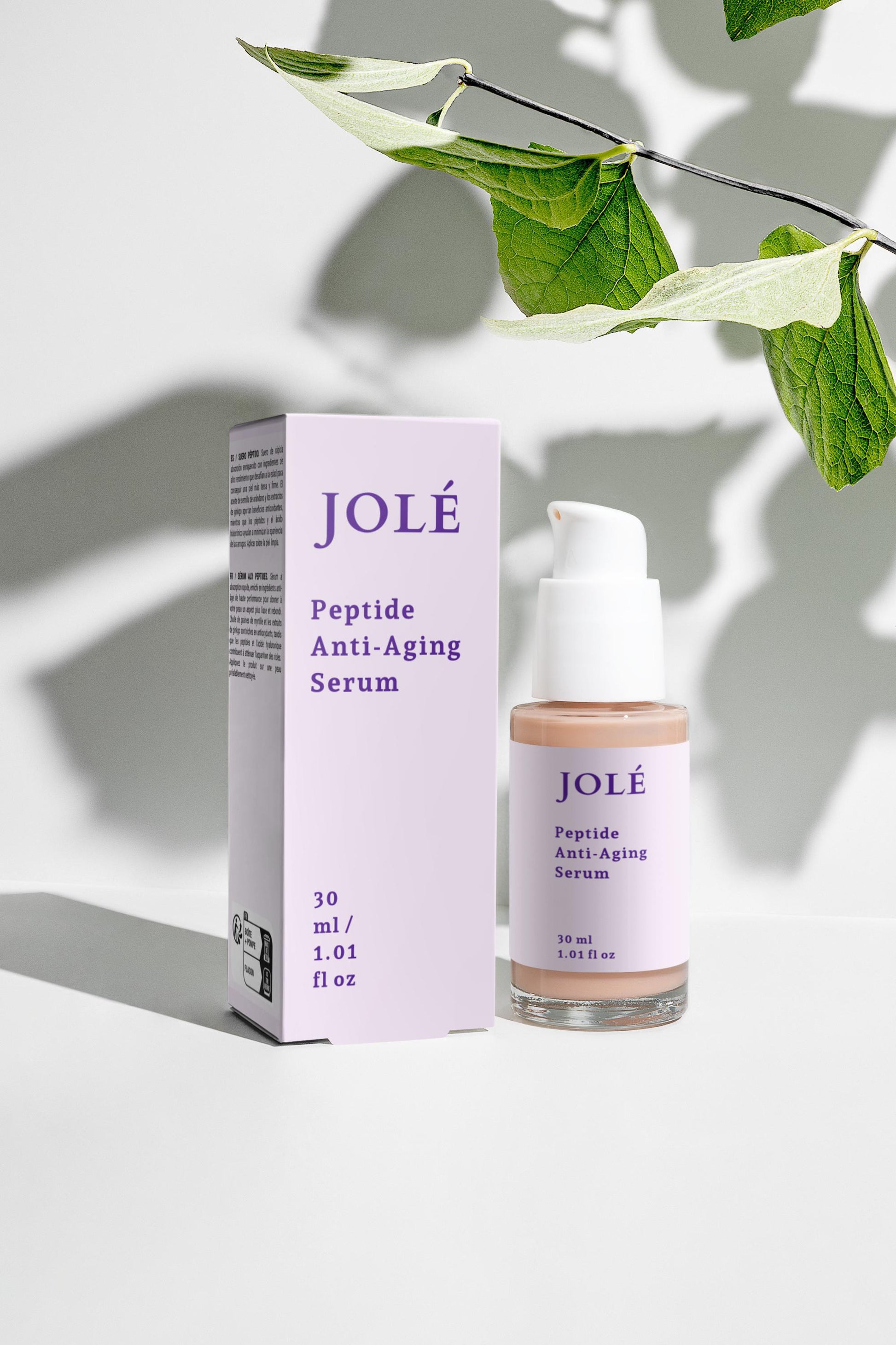 JOLÉ Peptide Anti-Aging Serum is a silky, lightweight formula enriched with advanced peptides, hyaluronic acid, and antioxidant botanicals to help visibly smooth, plump, and firm the skin for a more radiant appearance.